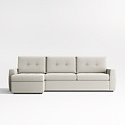 Whether providing a seat or an overnight stay, our Sombra is a supercomfortable, design-conscious sleeper sectional with lots of extras. The right-arm storage chaise and left-arm sleeper loveseat capture the eye with clean lines, buttonless tufting and convex-contoured track arms, while seat and back cushions offer soft-yet-supportive comfort. When it's time to retire, the loveseat unfolds to a plush, high-density mattress that's eight inches longer than traditional sleeper mattresses. Your overnight guests will thank you for the sleep-inducing comfort provided by the high-density queen mattress. The sleeper requires zero wall clearance so feel free to position the sofa right up against the wall, a great option for small spaces. To max out the sectional's practicality, the chaise seat cushion removes to reveal generous storage space for pillows, sheets and blankets.
