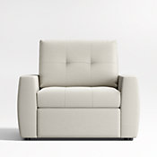 Whether providing a seat or an overnight stay, our Sombra is a supercomfortable, design-conscious sleeper chair with lots of extras. Clean lines, buttonless tufting and convex-contoured track arms capture the eye, while seat and back cushions offer soft-yet-supportive comfort. When it's time to retire, the chair unfolds a cot-sized mattress that's eight inches longer than traditional sleeper mattresses. Your overnight guests will thank you for the sleep-inducing comfort provided by the high-density mattress. The sleeper requires zero wall clearance so feel free to position the chair right up against the wall—a great option for small spaces.