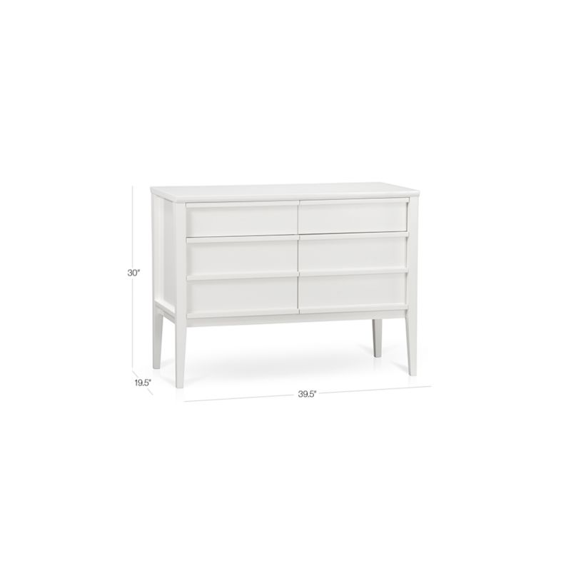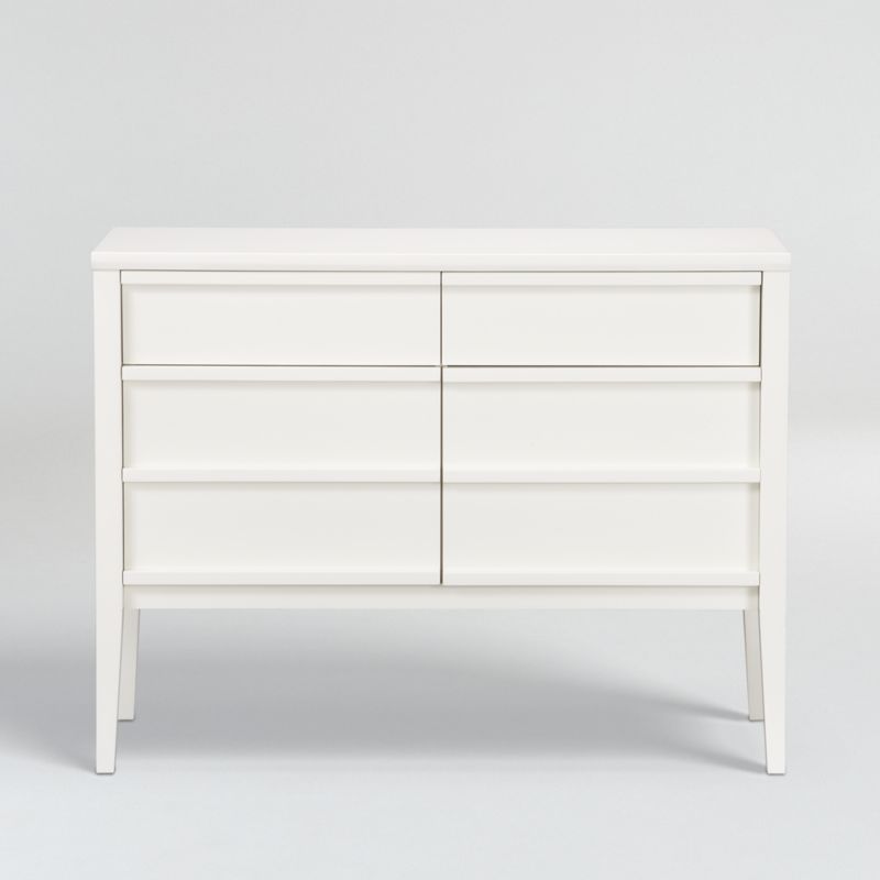 Designed by Mark Daniel, the top pair of drawers offers generous space for desk accessories. What appears to be two bottom drawers on each side are a pair of file cabinets large enough to accommodate letter or legal-size files. The Spotlight White Credenza is a Crate and Barrel exclusive.