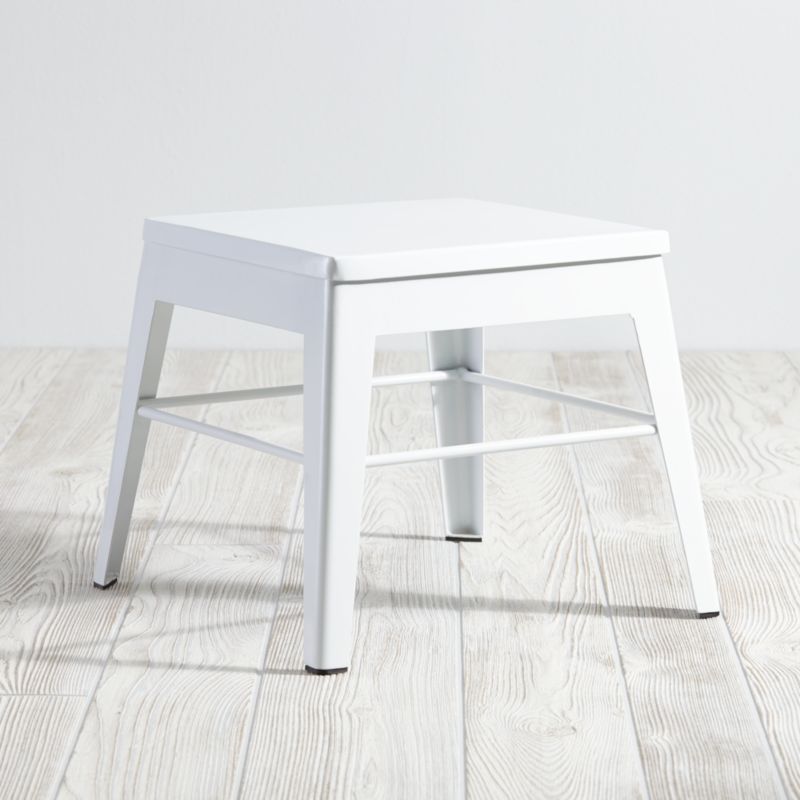 Can your kids use our Steel White Step Stool as a step stool to reach a little higher? Yes. Can they use it as a play chair with any of our 15" play tables? You bet. Our white metal step stool is as versatile as it is stylish. Whether you need a place to sit during bathtimes or your kids need a little help reaching the sink, this stool has got you covered. Not to mention its classic white finish makes it easy to coordinate in almost any room.