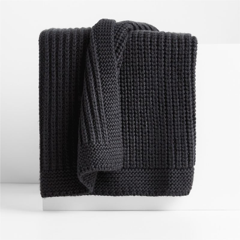 This dark grey throw has the classic-yet-casual look of ribbed fisherman's sweater. Bordered with a contrasting stitch, the knit blanket coordinates with the matching pillow as well as other pillows in our collection. Drape the wool-blend throw on a sofa or foot of the bed for easy access to its snuggly warmth and cozy, comforting weight.