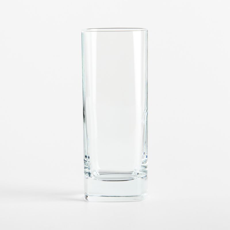 Our modern cooler glass squares the circle, offering a modern update on the classic tall drink glass. Featuring a softy rounded yet geometric silhouette, the glass looks cool and contemporary filled with a Tom Collins, gin and tonic or sparkling water. A thick sham grounds the look, adding nice heft to the hold. This cooler glass is dishwasher-safe for easy cleanup after cocktail hour and dinner parties.