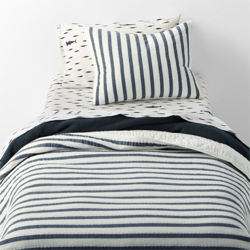 A perfectly cozy color pop, our Striped Waffle Weave quilt features a snuggly soft blend of woven textures in bold, playful stripes. It mixes and matches beautifully with a range of other rich hues for a layered bedding look. Plus, this versatile essential is easy to keep fresh and clean thanks to the machine-washable organic cotton.