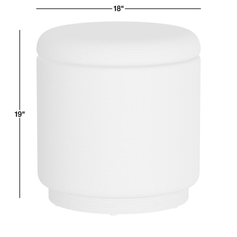 Our Studio ottoman stands on its own for its Art Deco-inspired panache, making its hidden storage capacity an added plus. Topped with a soft cushioned lid, the cylindrical ottoman provides a convenient spot to take a casual seat or prop up weary feet. Lift the lid to find a black fabric-lined interior for storing throws, knitting or other items. Cotton chenille woven with a subtle grid pattern perfectly complements the ribbed plinth base made of solid walnut with a natural finish