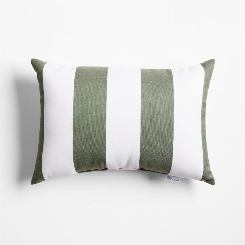 Our elevated take on a coastal classic, this cabana stripe outdoor lumbar pillow alternates bold bands of crisp white and fern green. The all-weather Sunbrella fabric stands up to the elements while adding living room-level comfort and beach-worthy style to your porch or patio furniture. Mix and match with our other outdoor throw pillows in the same lush palette for inviting alfresco seating with an intriguing play of patterns.