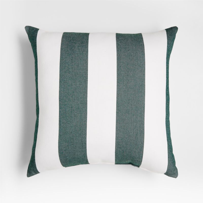 Our elevated take on a coastal classic, the Cozumel cabana-stripe outdoor pillow alternates bold bands of crisp white and variegated deep green. The all-weather Sunbrella fabric stands up to the elements while adding living room-level comfort and beach-worthy style to your porch or patio furniture. Mix and match with our other outdoor throw pillows in the same fresh palette for inviting alfresco seating with an intriguing play of patterns.