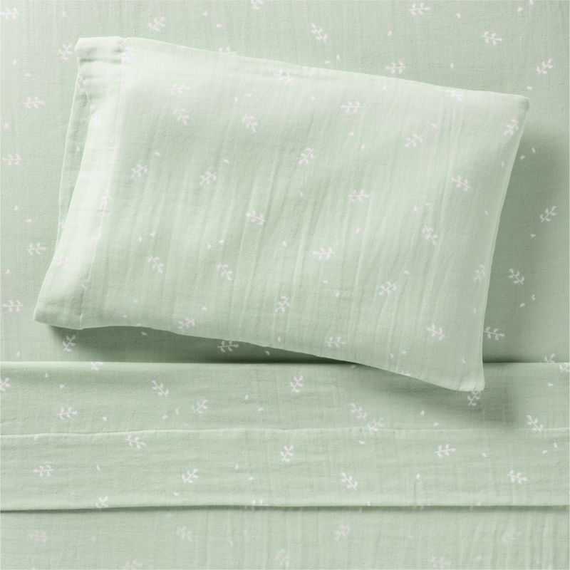 Supersoft Muted Teal Leaf Print Organic Cotton Gauze Kids Pillowcase