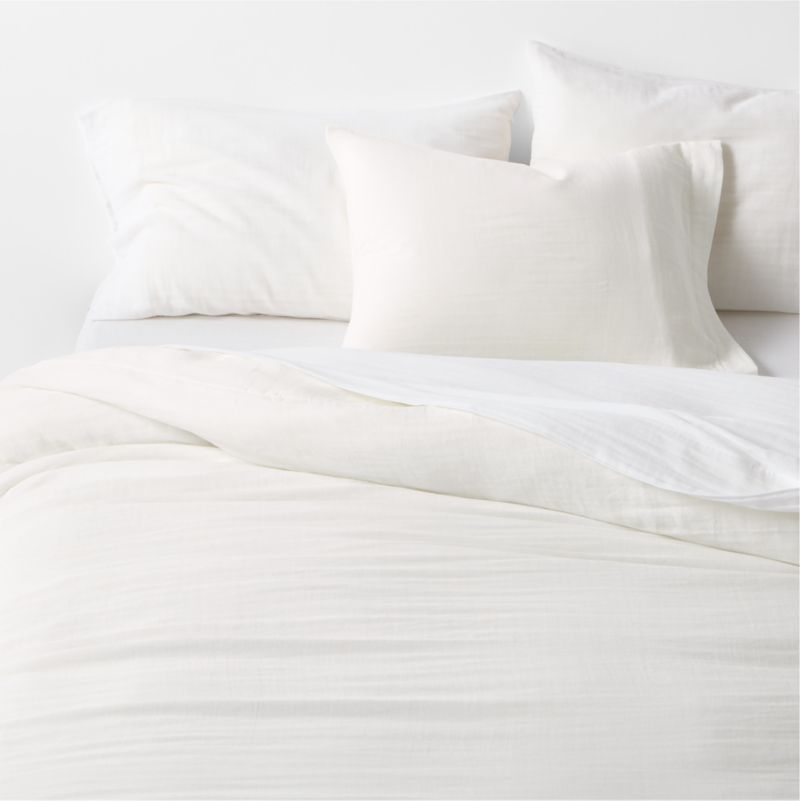 Like sleeping in a cozy cloud. Our gauzy Supersoft bedding is irresistibly soft and airy. The double-layer weaving technique creates pockets of air to create compelling coziness, while the open weave ensures breathability. This organic cotton duvet cover makes the bed with a laid-back, breezy look—especially when layered with other crisp white bedding from our Supersoft collection.