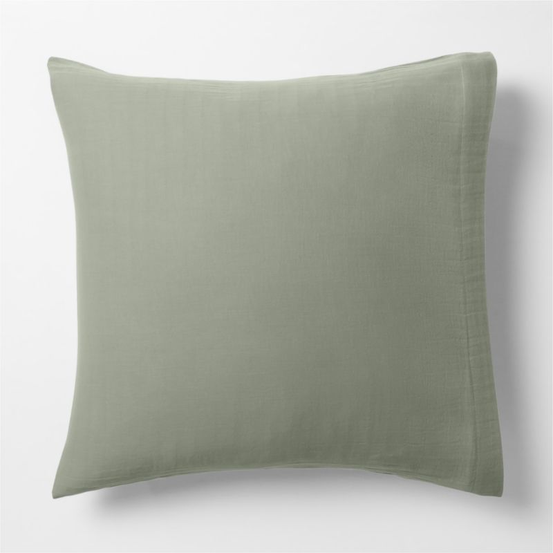 Like sleeping in a cozy cloud. Our gauzy Supersoft bedding is irresistibly soft and airy. The double-layer weaving technique creates pockets of air to create compelling coziness, while the open weave ensures breathability. This organic cotton pillow sham in a sage-inspired grey-green that serves as an elevated neutral makes the bed with a laid-back, breezy look—especially when layered with other shadow sage bedding.