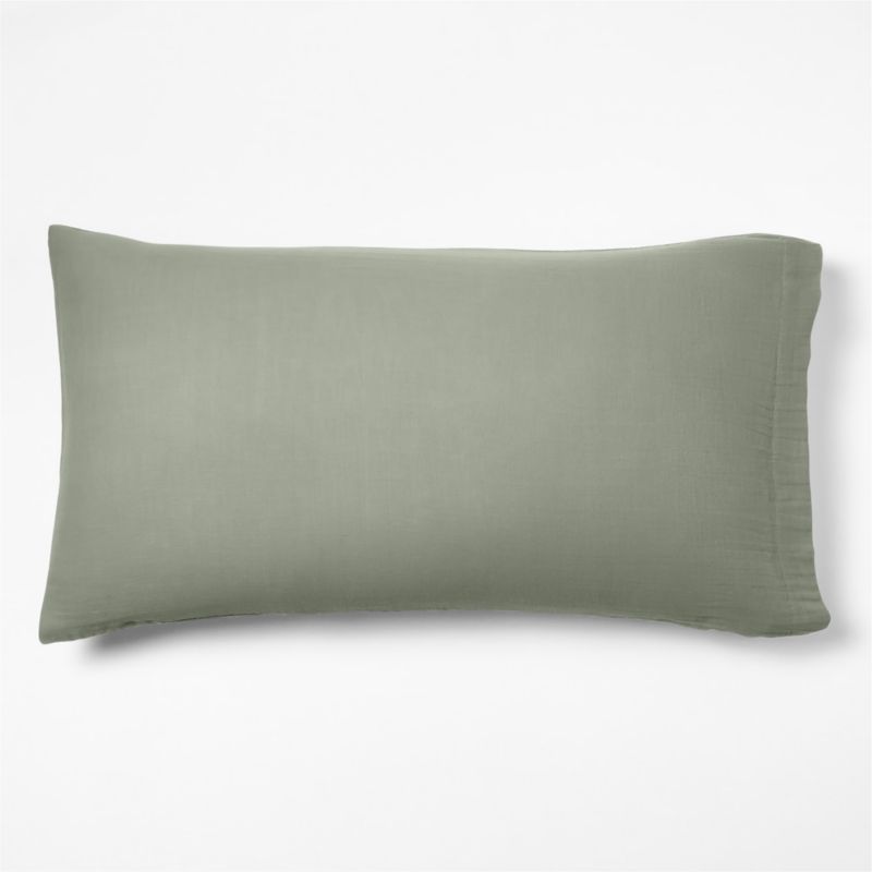 Like sleeping in a cozy cloud. Our gauzy Supersoft bedding is irresistibly soft and airy. The double-layer weaving technique creates pockets of air to create compelling coziness, while the open weave ensures breathability. This organic cotton pillow sham in a sage-inspired grey-green that serves as an elevated neutral makes the bed with a laid-back, breezy look—especially when layered with other shadow sage bedding.