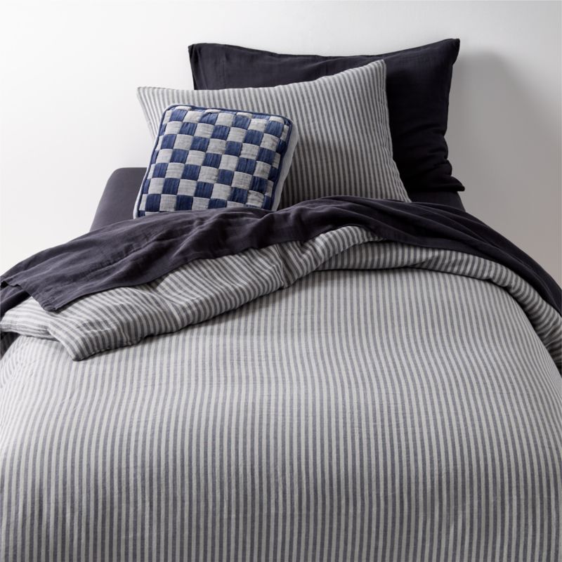 Supersoft Striped Deep Indigo Organic Cotton Gauze Kids Twin Duvet