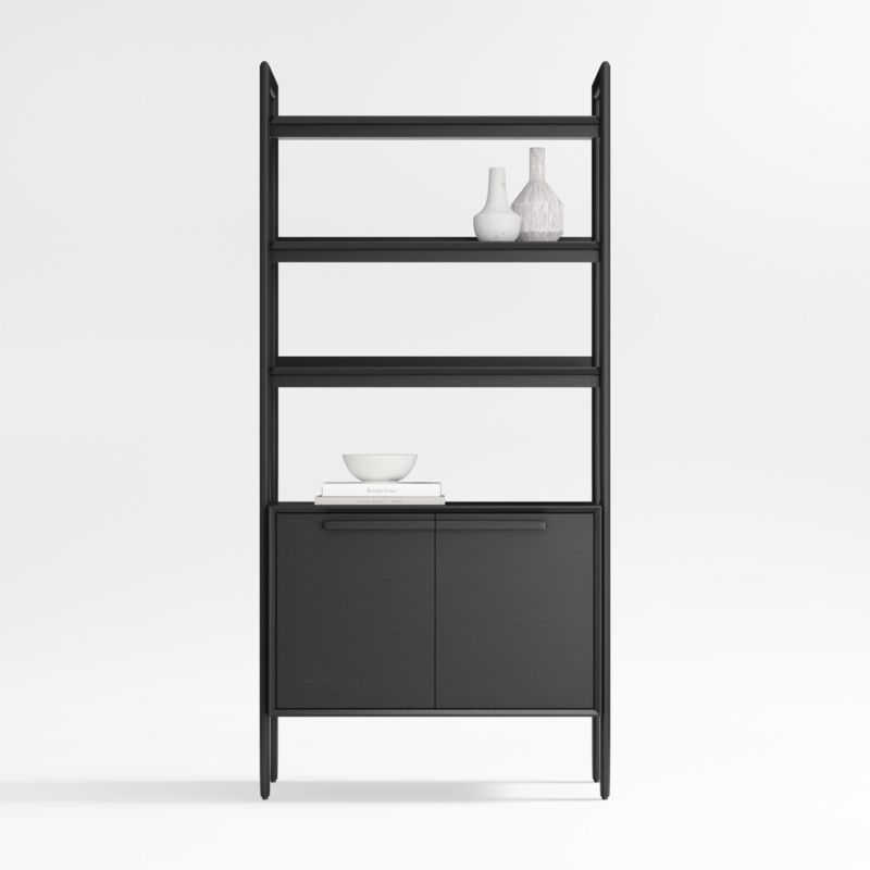 Our popular Tate collection brings its cool 1960s vibe into the office, family room or library as a modular storage solution with style to spare. Made with black-finished ash veneer, the bookcase features open shelving on top of a cabinet with sleek flat-front doors for a seamless mix of open and closed storage.