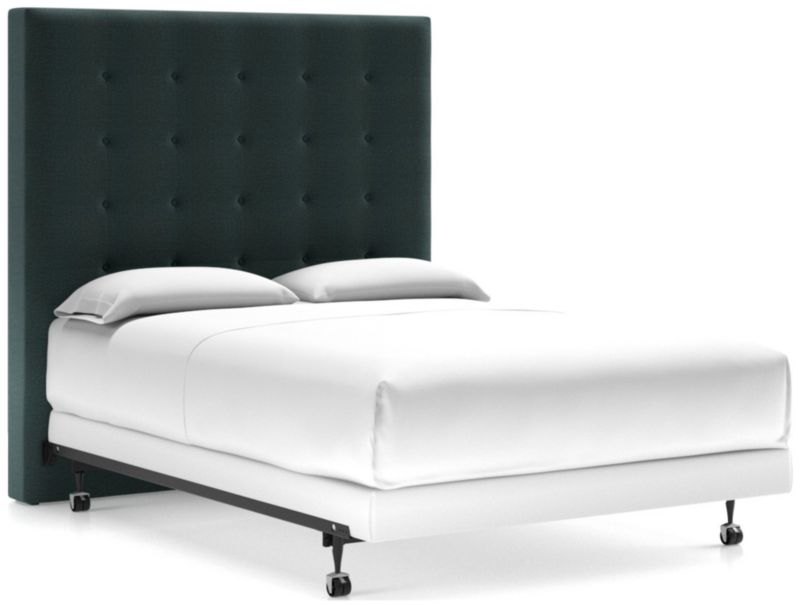 Our 1960s-inspired Tate headboard recalls the timelessness of mid-century design with a tailored profile and textural upholstery punctuated by rows of retro button-tufting. Offered in a taller profile, the headboard's textural upholstery is punctuated with four rows of retro button-tufting.