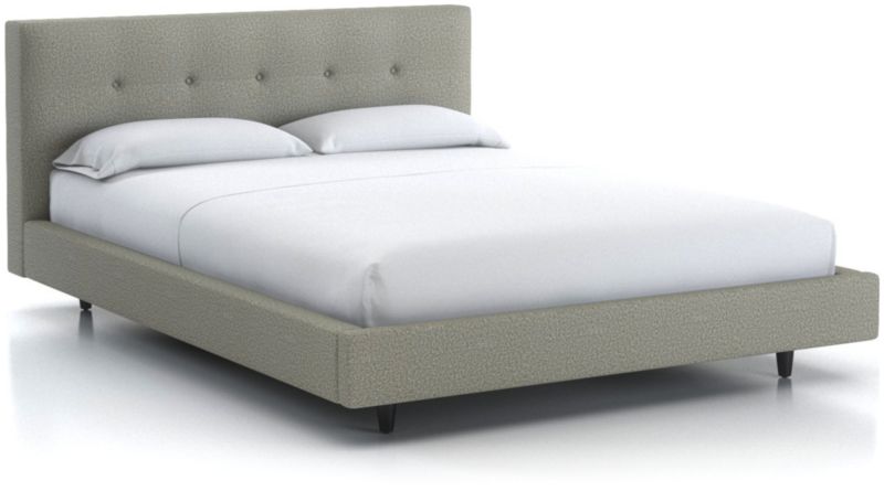 Our 1960s-inspired Tate collection recalls the timelessness of mid-century design with tailored profiles and streamlined shapes. The bed's textural fabric is punctuated with retro button-tufting on the headboard, which is fully upholstered front and back to give you more flexibility in positioning the bed. Streamlined, low platform design takes a minimal stance with dark brown tapered legs.