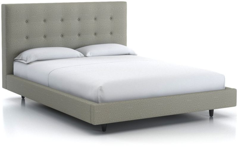 Our 1960s-inspired Tate collection recalls the timelessness of mid-century design with tailored profiles and streamlined shapes. Offered with a taller headboard, the bed's textural upholstery is punctuated with three rows of retro button-tufting. Streamlined, low platform design takes a minimal stance with dark brown tapered legs.