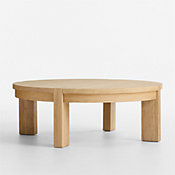 Our Terra coffee table celebrates expert woodworking and the rustic beauty of natural oak. Plank-style legs take an angled stance, pulling through the round top to showcase end grain for contrast and textural interest. Each piece of wood tells its own story revealed in unique tonal variations, knots and grain. We love the way these organic characteristics contribute to Terra's rustic authenticity and farmhouse appeal.