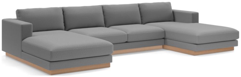 While you sink into the laid-back comfort of our Tidal sectional, enjoy the feel-good vibes of knowing that the sofa's upholstery includes yarn made from recycled ocean plastic. The durable, easy-care fabric indulges with a soft micro-chenille weave that perfectly complements the deeply cushioned seat and pillow backs that provide just the right amount of recline. Combining an armless sofa and left- and right-arm sofas, the three-piece sectional features set-back arms and exposed seat decks that create a stepped look with an ash veneer plinth base that lets the sofa float in a room. Though Tidal's stocked upholstery contains a percentage of upcycled ocean plastic, it has a very soft and inviting hand that begs to be touched.