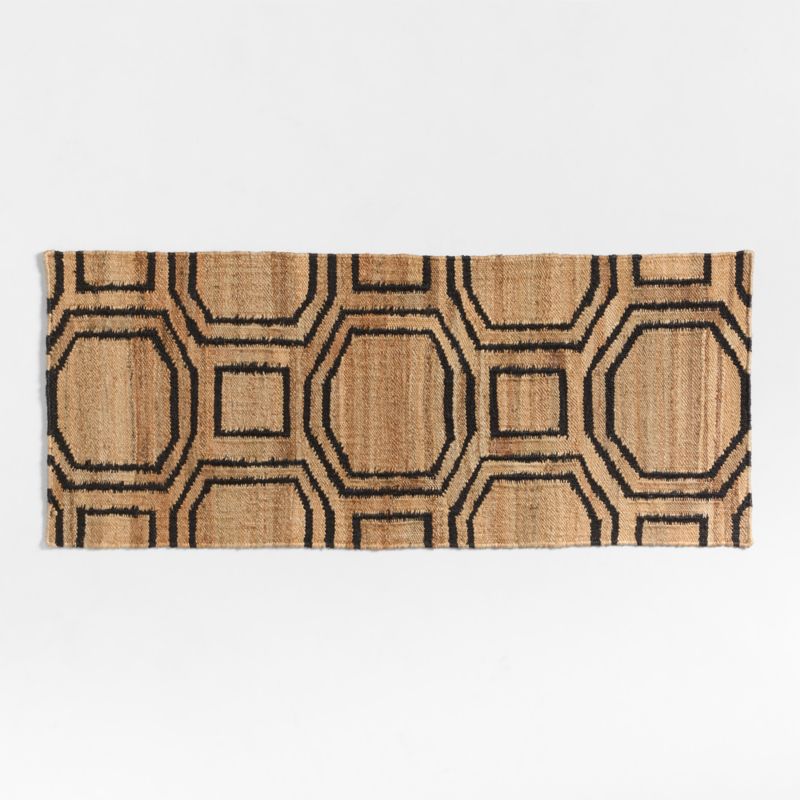 Inspired by tilework, our doormat recreates an elegant and organic coffered design in rugged jute. Black squares and concentric octagons stand out against the countless warm hues of the natural fiber. Handwoven by skilled artisans, the indoor/outdoor mat fits easily under most doors to adorn your porch, mudroom or entryway. We especially love the look of this doormat layered on a tile floor for a fascinating play of patterns.
