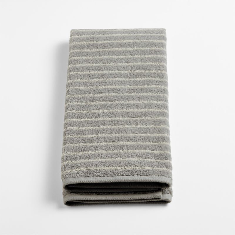 Our Breton Stripe hand towel is made of 100% organic cotton terry for gentle, luxurious softness, with a loop construction to soak up moisture quickly. The towel brings a subtle hit of pattern and soft color to a bathroom, especially when paired with our coordinating bath towels, washcloths and bath mat.