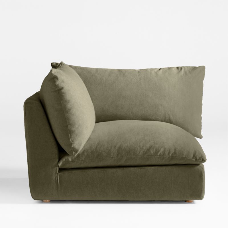 It's time to Unwind with our coastal-cool slipcovered sectional collection. Named after our favorite thing to do, this modern beauty delivers with sumptuous sink-in cushions and relaxing proportions. Designed to coordinate with other Unwind sectional pieces, the corner slipcovered chair features a low deck to make room for pillowy back and seat cushions that sit exceptionally deep and comfortable. We love the natural feel and slubby texture of the slipcovers, made of a breezy blend of cotton, linen and viscose yarns.