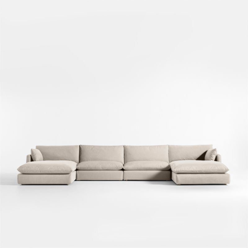 Unwind Modular 4-Piece U-Shaped Slipcovered Sectional Sofa with Double Chaise Lounge26height194.48width83.7depthMeasurements are in inches.66.04height493.98width212.6depthMeasurements are in centimeters.