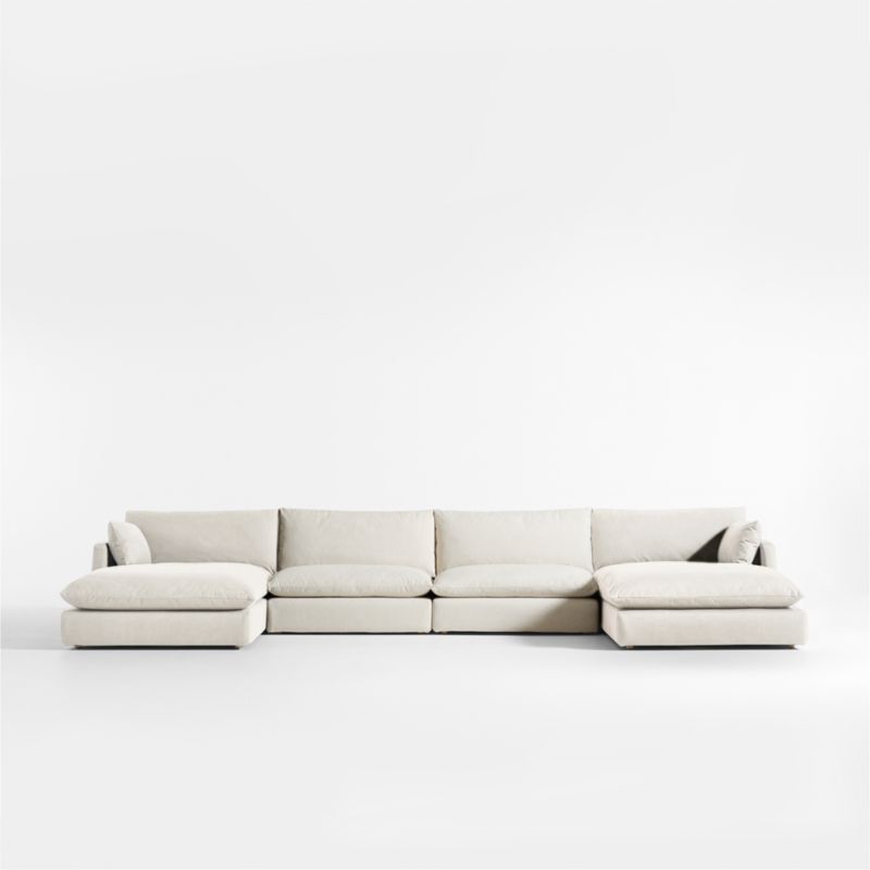 Unwind Modular 4-Piece U-Shaped Slipcovered Sectional Sofa with Double Chaise Lounge26height194.48width83.7depthMeasurements are in inches.66.04height493.98width212.6depthMeasurements are in centimeters.