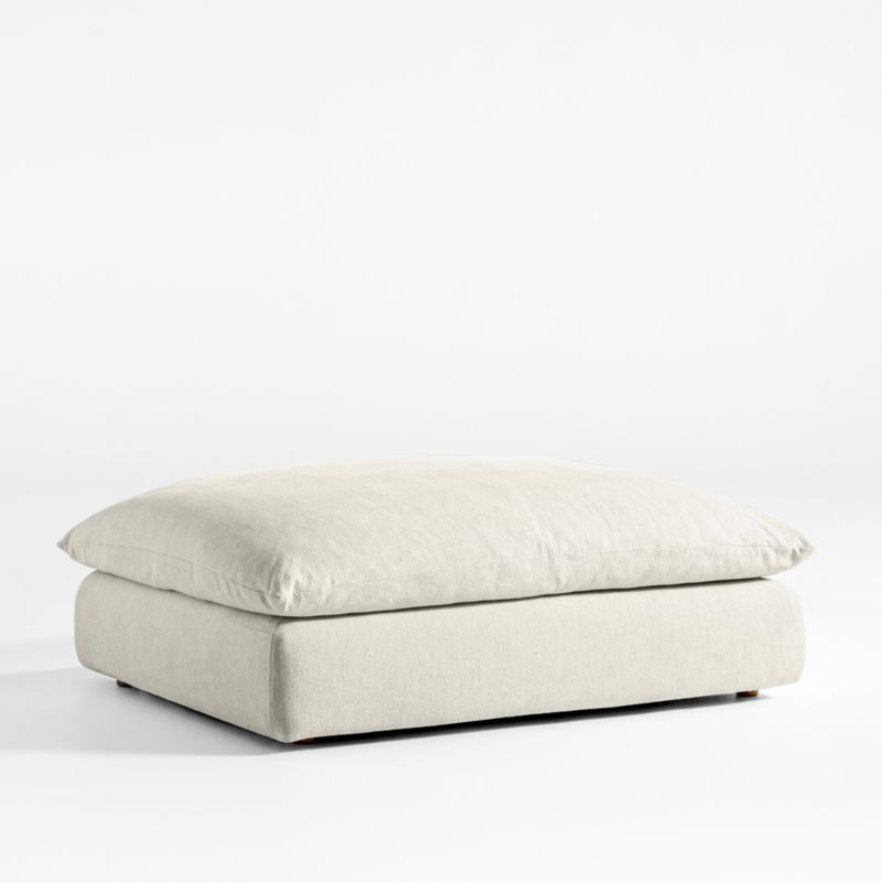 It's time to Unwind with our coastal-cool slipcovered sectional collection. Named after our favorite thing to do, this modern beauty delivers with sumptuous sink-in cushions and relaxing proportions. Designed to coordinate with other Unwind sectional pieces, the slipcovered ottoman features a low deck to make room for a pillowy seat cushion that sits exceptionally deep and comfortable. Slipcovers in a durable yet soft cotton-linen blend keep the look breezy and chill.