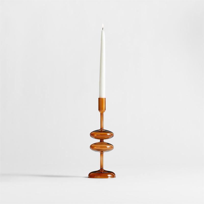 Milano Medium Amber Glass Taper Candle Holder 9.3"