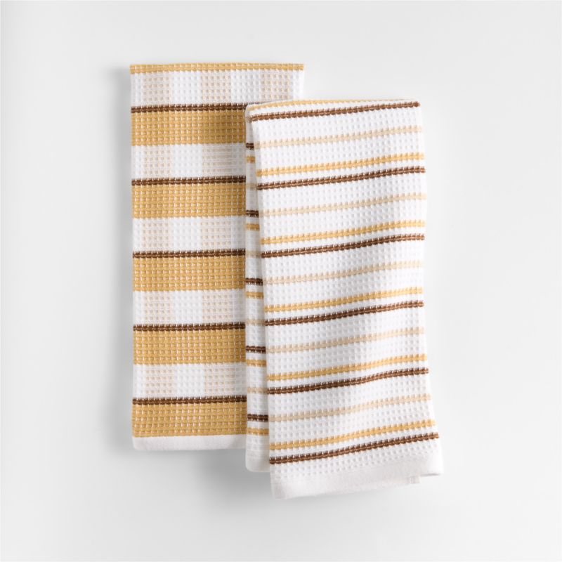 • View Waffle-Terry Plaid & Stripe Saffron Yellow Organic Cotton Kitchen Towels, Set of 2 - image 2 of 4