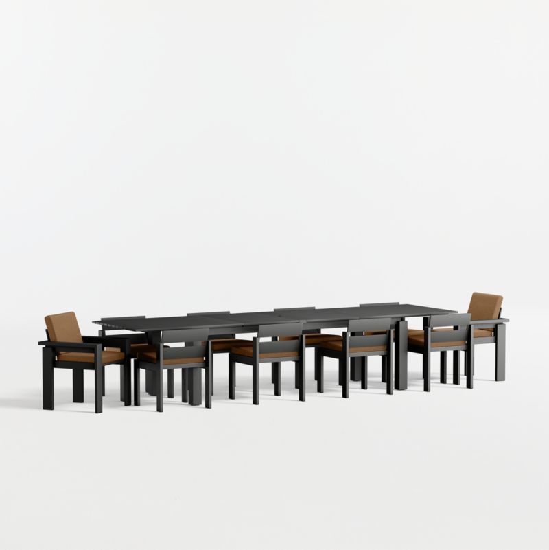 Walker 96"-144" Metal Extendable Outdoor Dining Table Set with Cast Teak Sunbrella ® Cushions