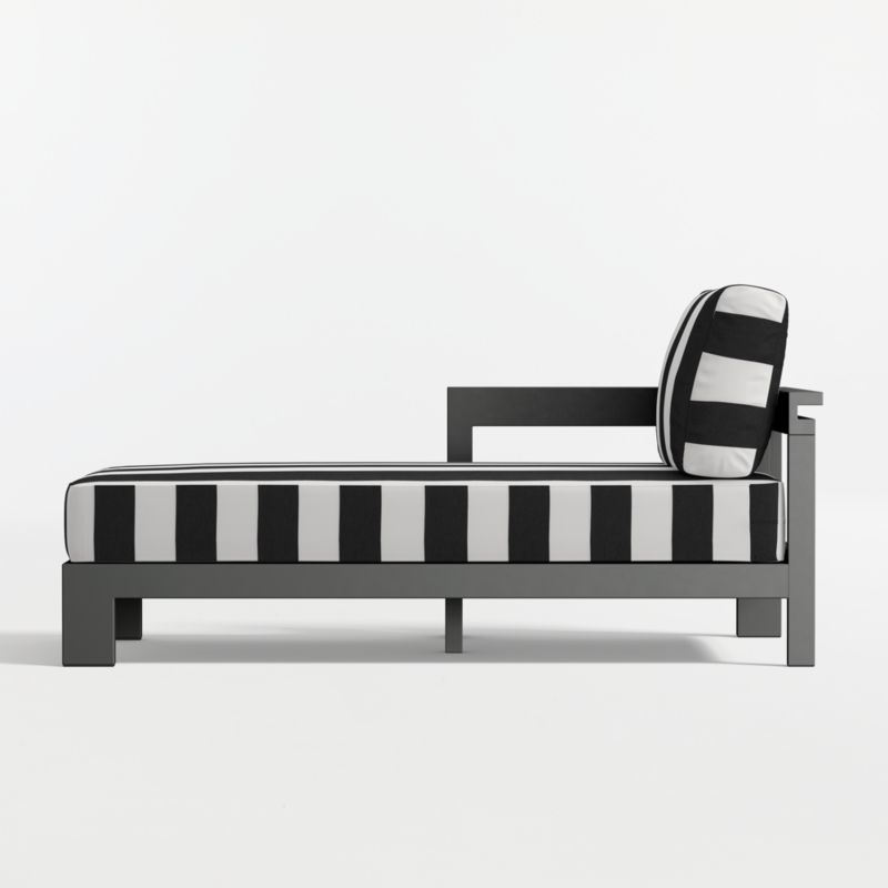 Walker Left-Arm Metal Outdoor Chaise with Black and White Cabana Stripe Sunbrella ยฎ Cushions