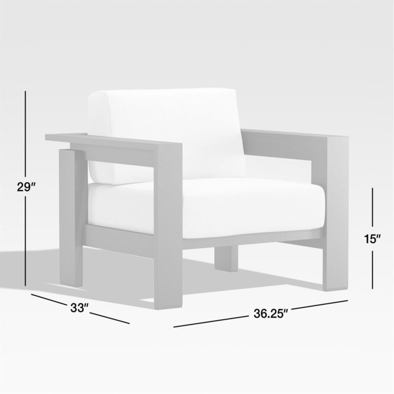 Walker Metal Outdoor Lounge Chair with Canvas White Sunbrella ® Cushions29height36.25width33depthMeasurements are in inches.73.66height92.08width83.82depthMeasurements are in centimeters.