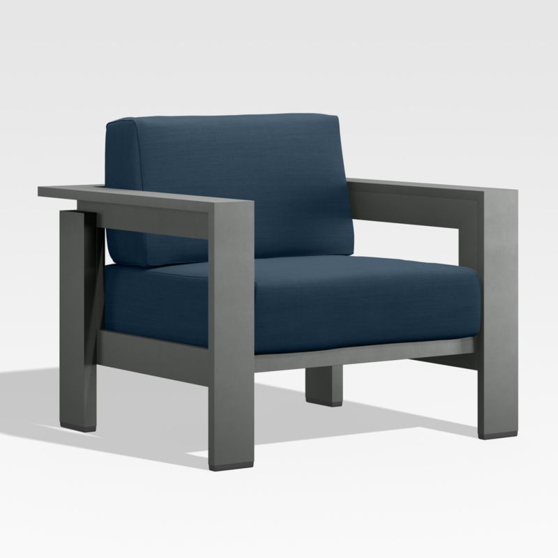 Walker Metal Outdoor Lounge Chair with Cast Harbor Blue Sunbrella ® Cushions