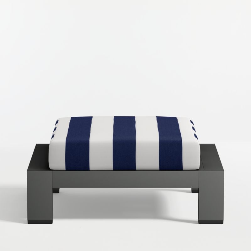 Walker Metal Outdoor Outdoor Ottoman with Navy and White Cabana Stripe Sunbrella ยฎ Cushion