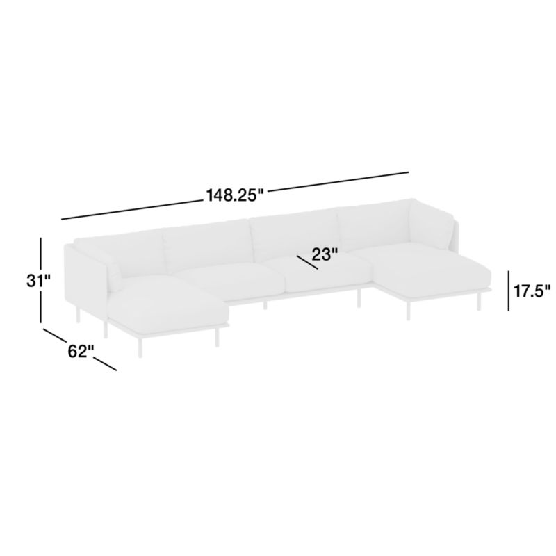 Wells 3-Piece U-Shaped Leather Sectional Sofa with Double Chaise Lounge