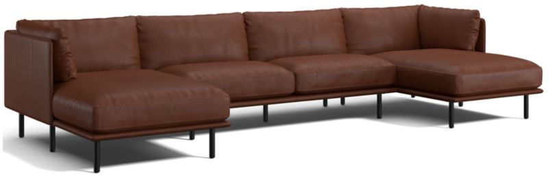 Wells 3-Piece U-Shaped Leather Sectional Sofa with Double Chaise Lounge