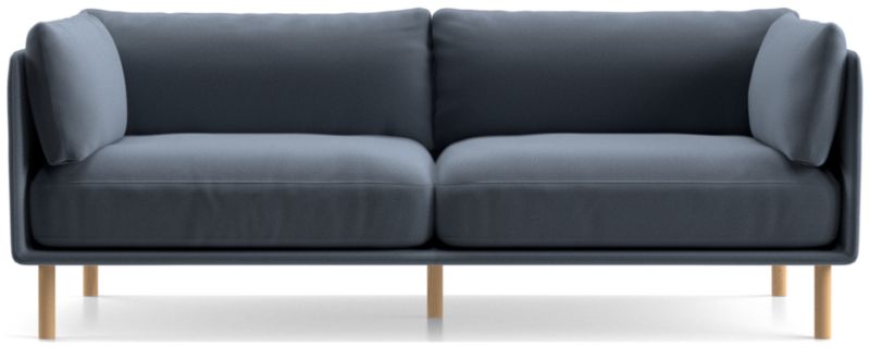 Modern, sophisticated and undeniably inviting, our Wells sofa tucks plump cushions onto a slim frame supported by sustainably sourced solid wood legs with a natural finish. The low deck allows plenty of room for an indulgent seat cushion that encourages you to linger. Tailored with top stitching and French seams on the cushions and a crisp micro-flange outlining the frame, the soft twill fabric suits active family life and cleans up beautifully. Our Wells sofa is a Crate & Barrel exclusive.
