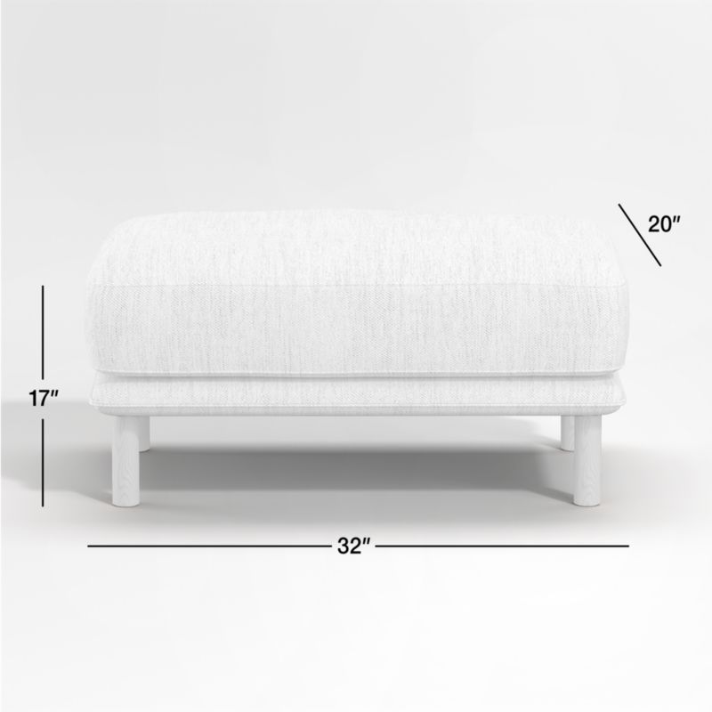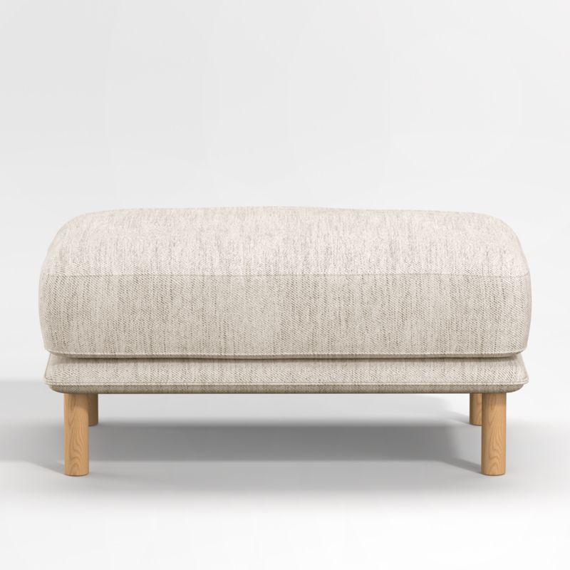 Designed to accompany our Wells chair, this ottoman looks modern and inviting as it tops the seat cushion on a slim frame supported by sustainably sourced solid wood legs with a natural finish. The low deck allows plenty of room for an indulgent seat cushion that encourages you to linger. Tailored with top stitching and French seams, the soft, stain-repellent twill fabric suits active family life and cleans up beautifully. Our Wells ottoman is a Crate & Barrel exclusive.