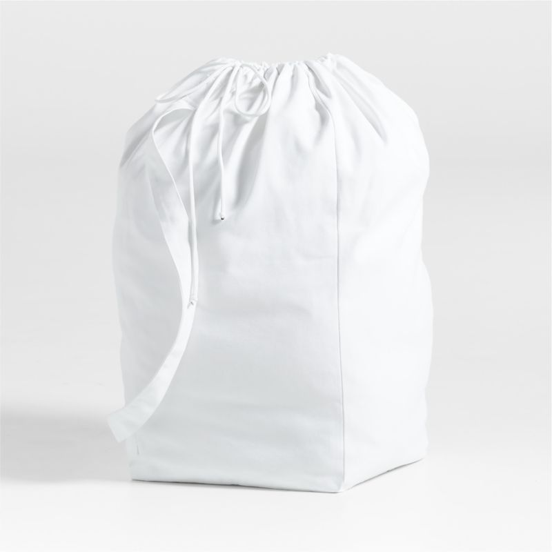 A washable white pure cotton canvas liner made to fit inside our Sedona hampers. A Crate and Barrel exclusive, this handy laundry bag also totes clothes and linens to the laundry room or laundromat thanks to its drawstring closure and wide, sturdy carrying strap.