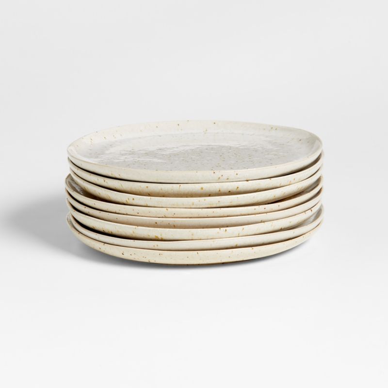 Speckled with flecks of brown reactive glaze, our sand-colored Wilder salad plate extends a warm welcome to a carefully composed salad course as well as s noontime sandwich. Earthy yet stylish, the artisanal stoneware plate is made for us exclusively in Portugal. Showcasing its own unique constellation of speckles, the plate has a modern organic shape that perfectly complements everyday meals or festive holiday gatherings.