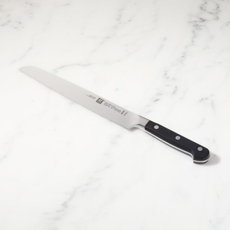 Bringing to bear 280 years of experience making and studying knives, Zwilling J.A. Henckels has created the most user-friendly knives on the market in its Pro series. With its serrated blade and ergonomic handle, this bread knife slices through crusty artisan breads, crispy baguettes, soft rolls, tomatoes, sausages and more. Forged from a single piece of high-carbon steel, the hand-sharpened and -polished knife is perfectly sized and weighted for all kinds of cutting tasks.
